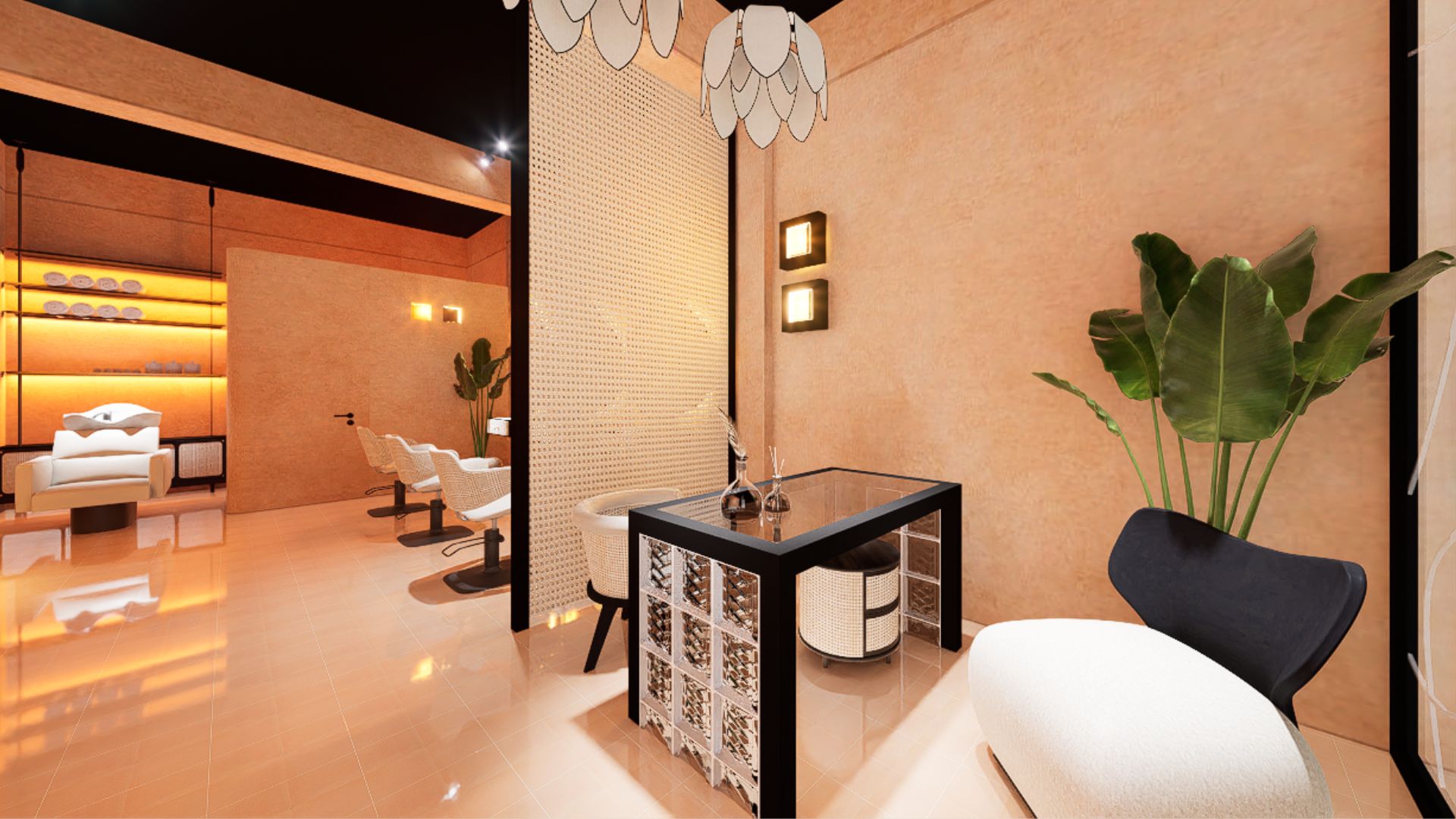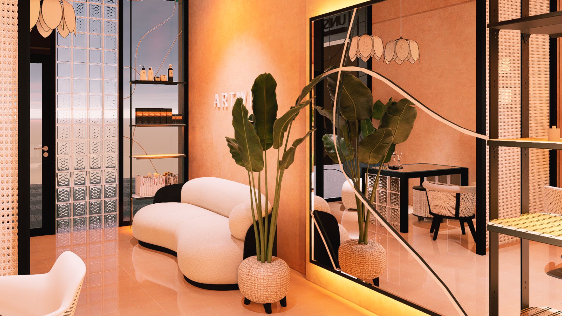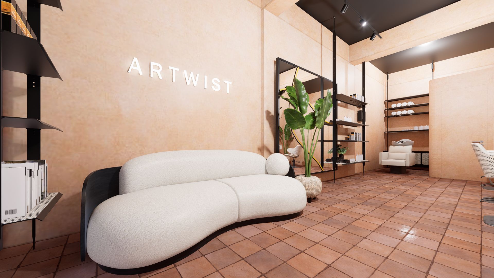 Artwist Salon is envisioned as a creative beauty space where elegance meets expression. The design blends soft curves, warm lighting, and refined textures to craft an inviting environment that feels both luxurious and personal. Each zone — from styling stations to the wash area — is arranged to enhance comfort while maintaining an efficient workflow for the stylists. A muted, modern palette acts as a calm backdrop, allowing the artistry of hair, beauty, and makeup to take center stage.