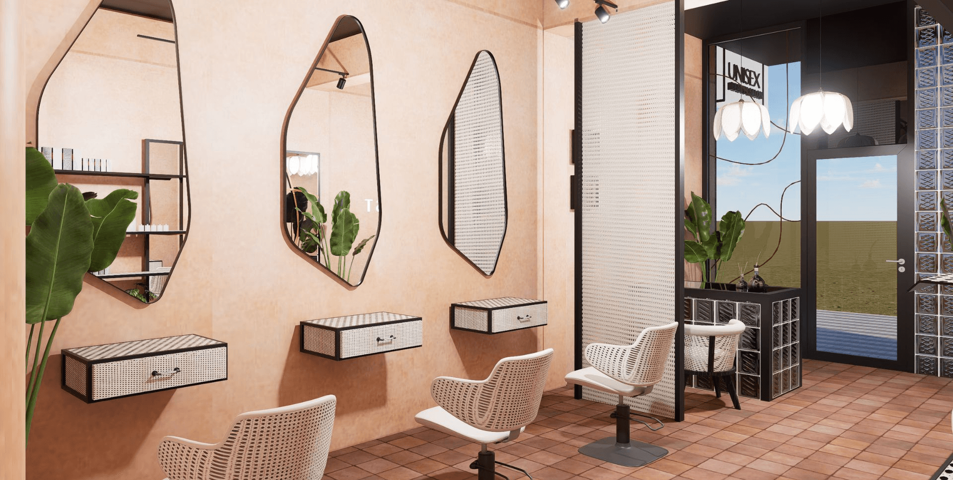 Efficient zoning ensures smooth workflow — with well-positioned styling chairs, wash stations, and waiting areas designed for comfort and ease.