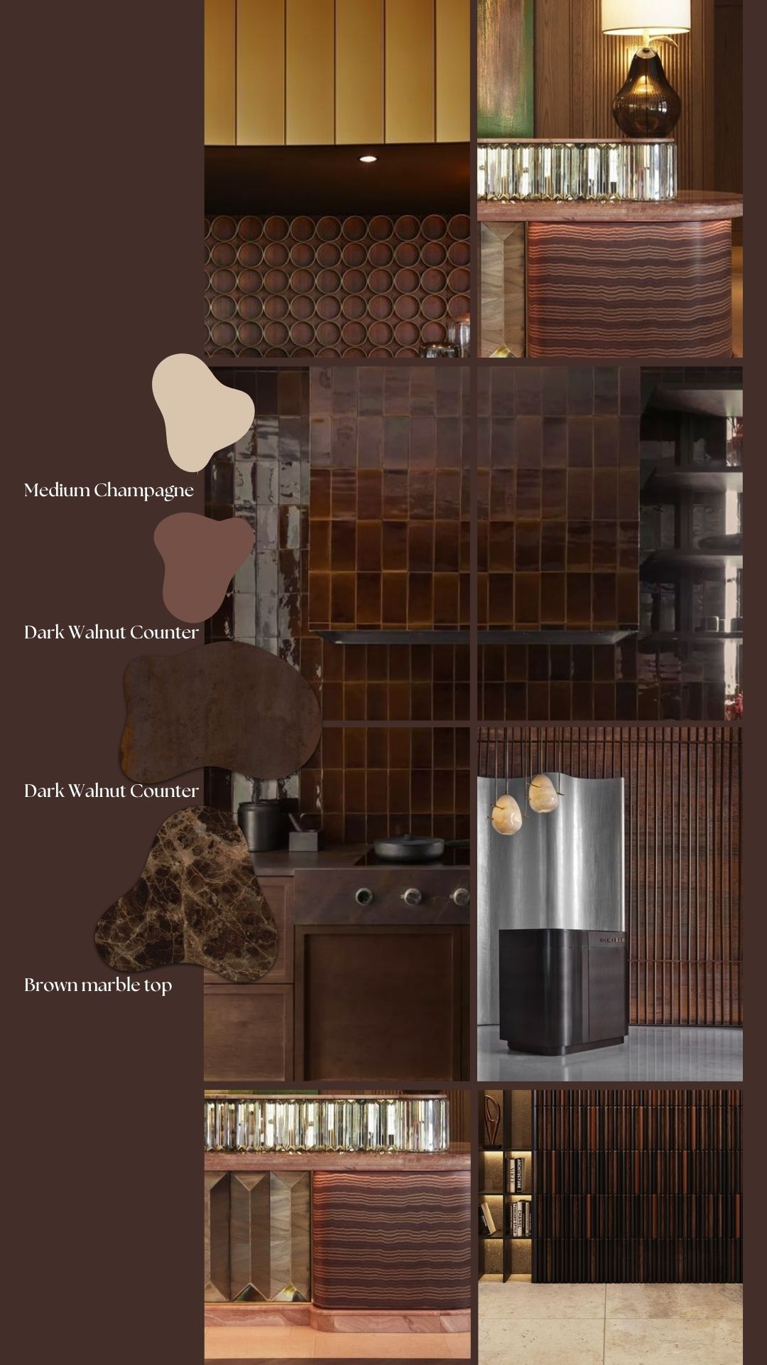 Rich browns, creamy neutrals, and golden accents create a sensory connection to the café’s core product — indulgence through color and texture.