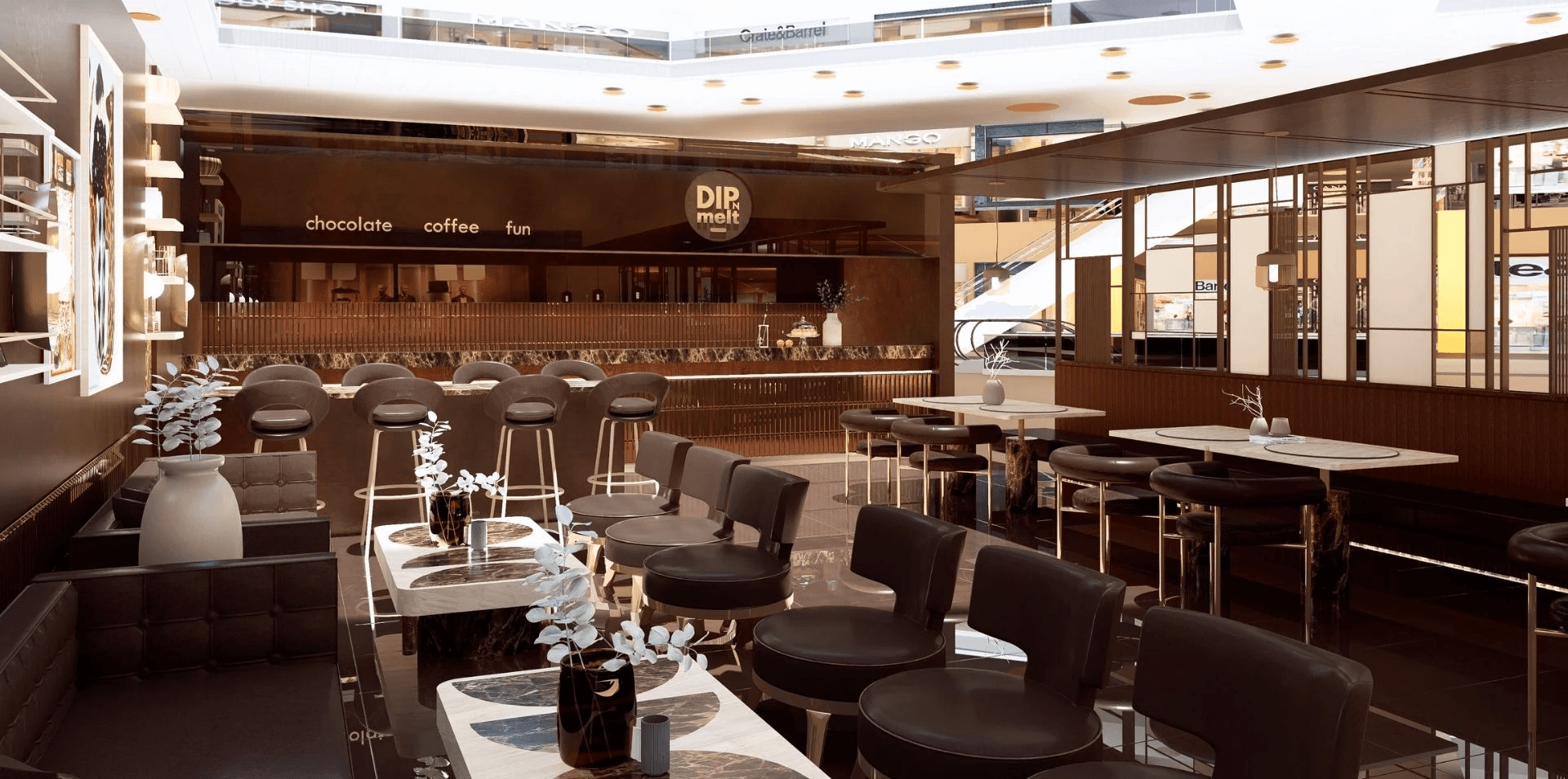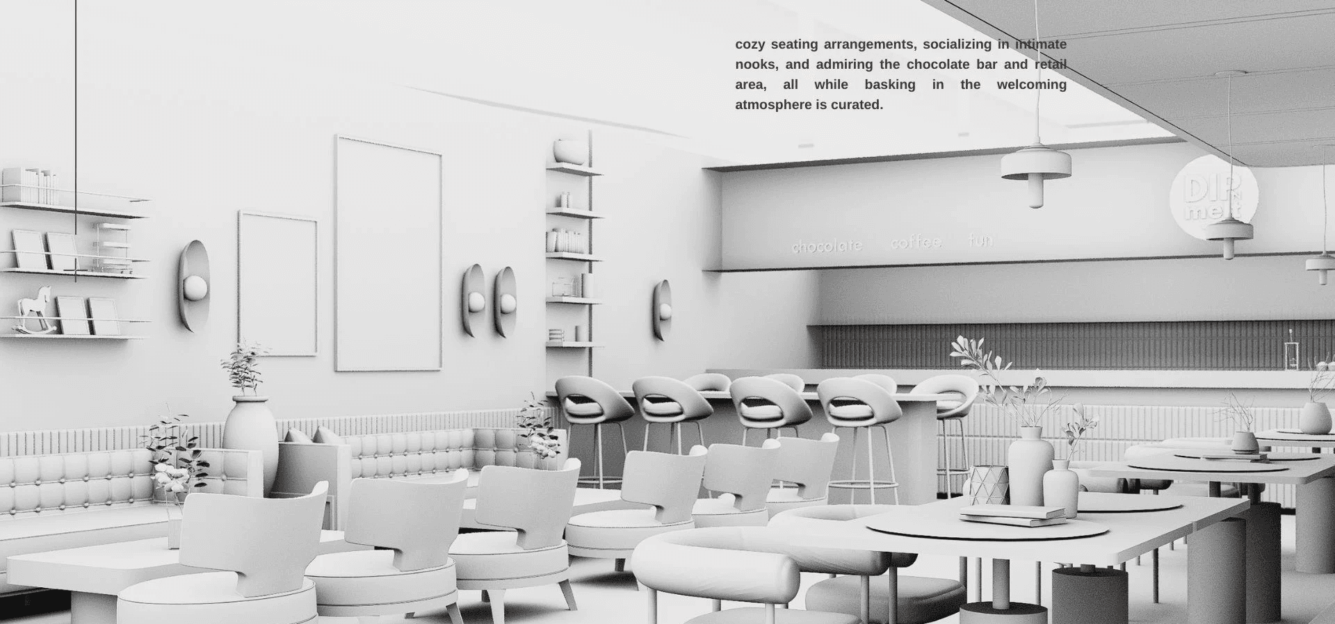 Inspired by the movement of melting chocolate, organic curves and soft transitions define the spatial flow, creating a sense of continuity and warmth.