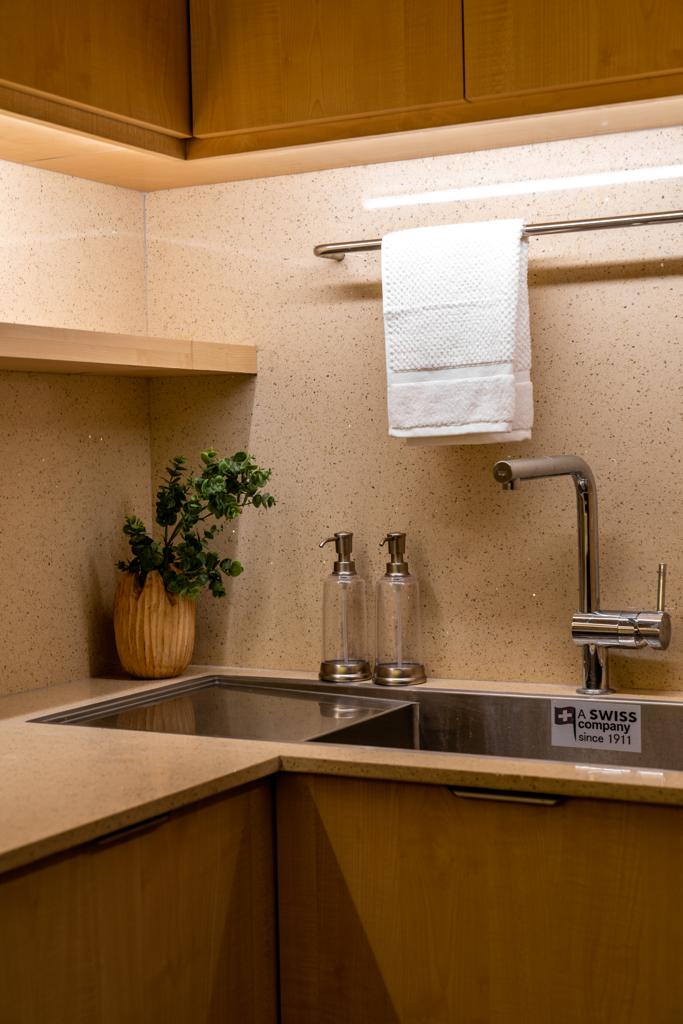 The brand’s core aesthetic inspired the repeated use of fluted textures along walls and surfaces, helping translate product language into spatial expression.