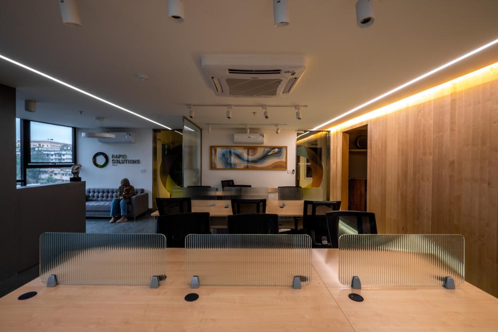 Office Space for Rapid Solution Pvt.Ltd - The design intent was to use minimal colors, patterns, and textures to create a sense of lightness for the inhabitants to experience calm while working, which in turn increases their productivity at work.
